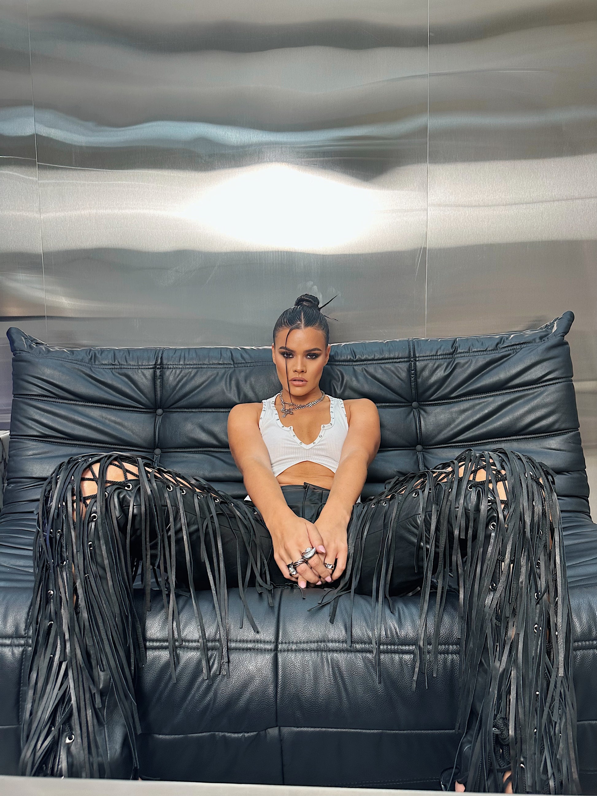 Fierce, fluid, and built to dominate the spotlight, the Predator Pants are crafted from 100% genuine luxury leather and designed with a dramatic interplay of movement and structure. Full-length slits run down the legs, revealing flashes of skin with every step, while long, flowing leather fringe cascades from each opening. The result is a dynamic, high-impact silhouette that shifts between bold stillness and powerful motion—perfect for statement dressing with undeniable presence.