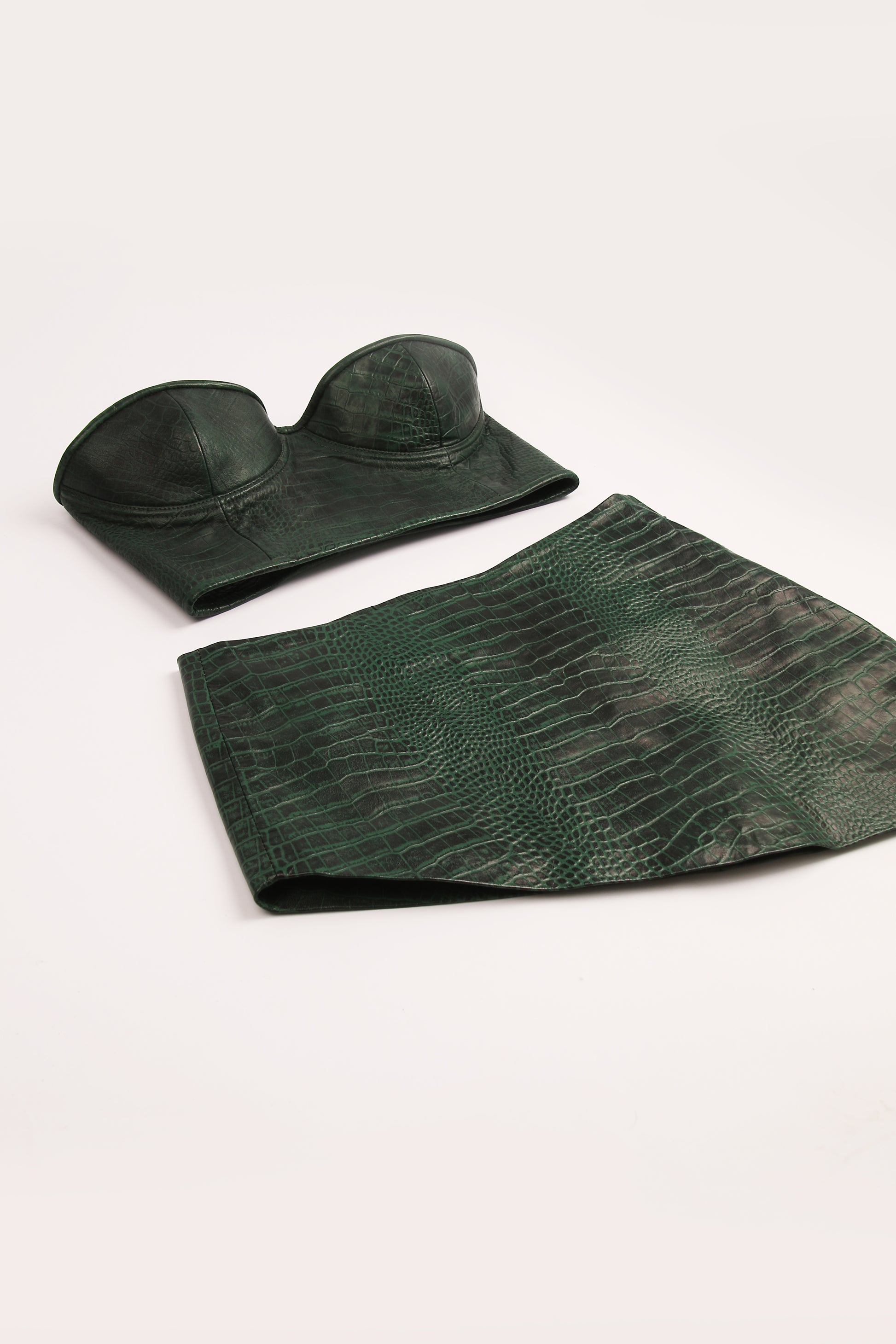 The Snappy Skirt – a sleek, high-impact statement piece from Tabaco. Made with genuine, textured crocodile print leather, this skirt exudes confidence and luxury in every stitch. The daring design contours your body for a fierce, sculpted fit, while the deep cut and adjustable straps give you the perfect balance of edge and elegance. Whether you’re layering it for a night out or rocking it solo, the Snappy Skirt is your ultimate power move—designed for the girl who doesn't just turn heads, but commands them. Pair with our Snappy Top for and elevated look.